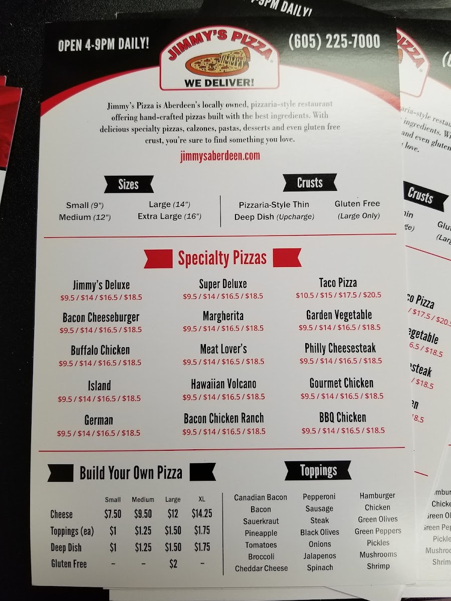 Jimmy's Pizza of Aberdeen Menu (2025 Update)